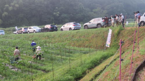 八代オクラの収穫取材 取材日