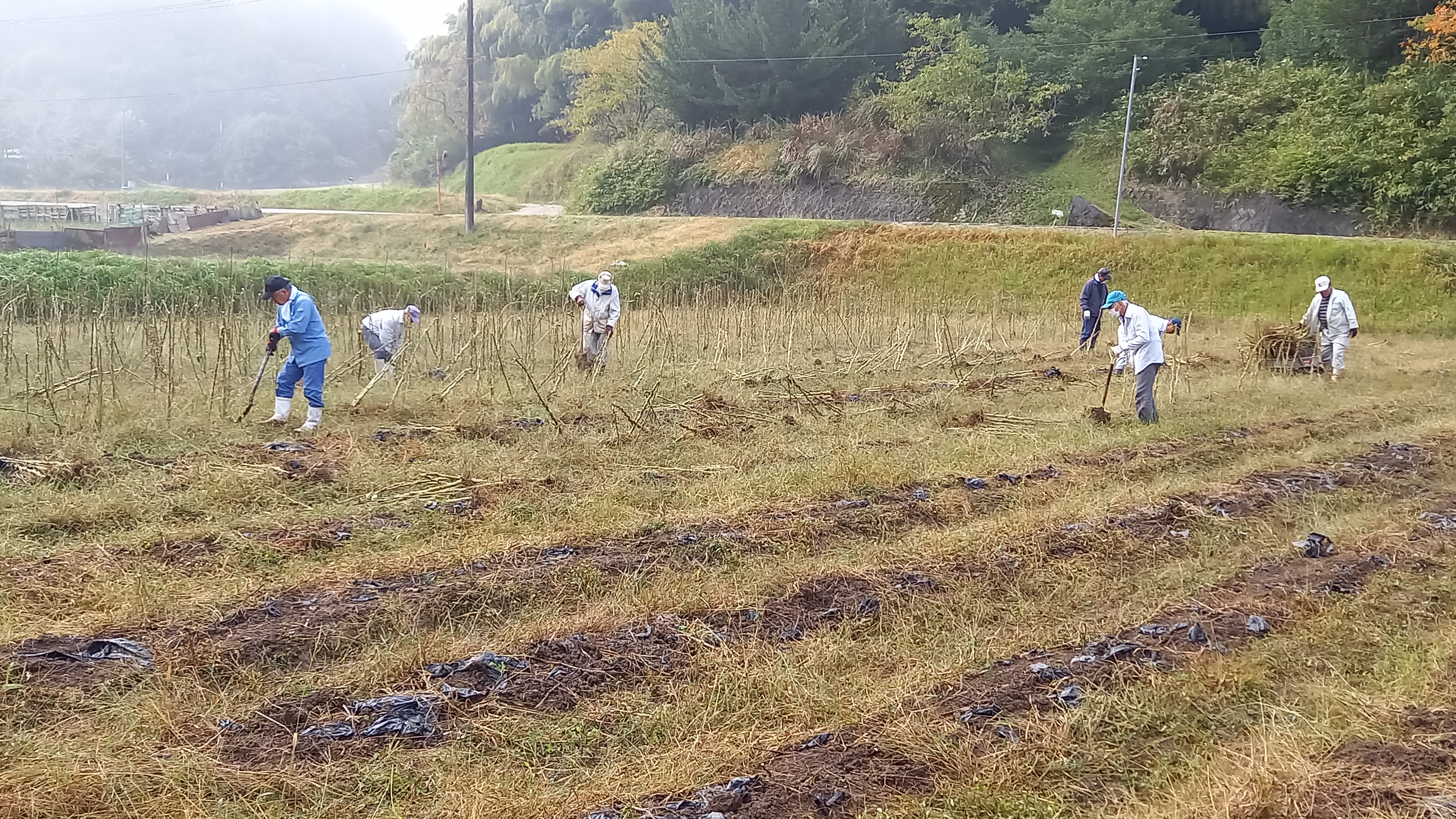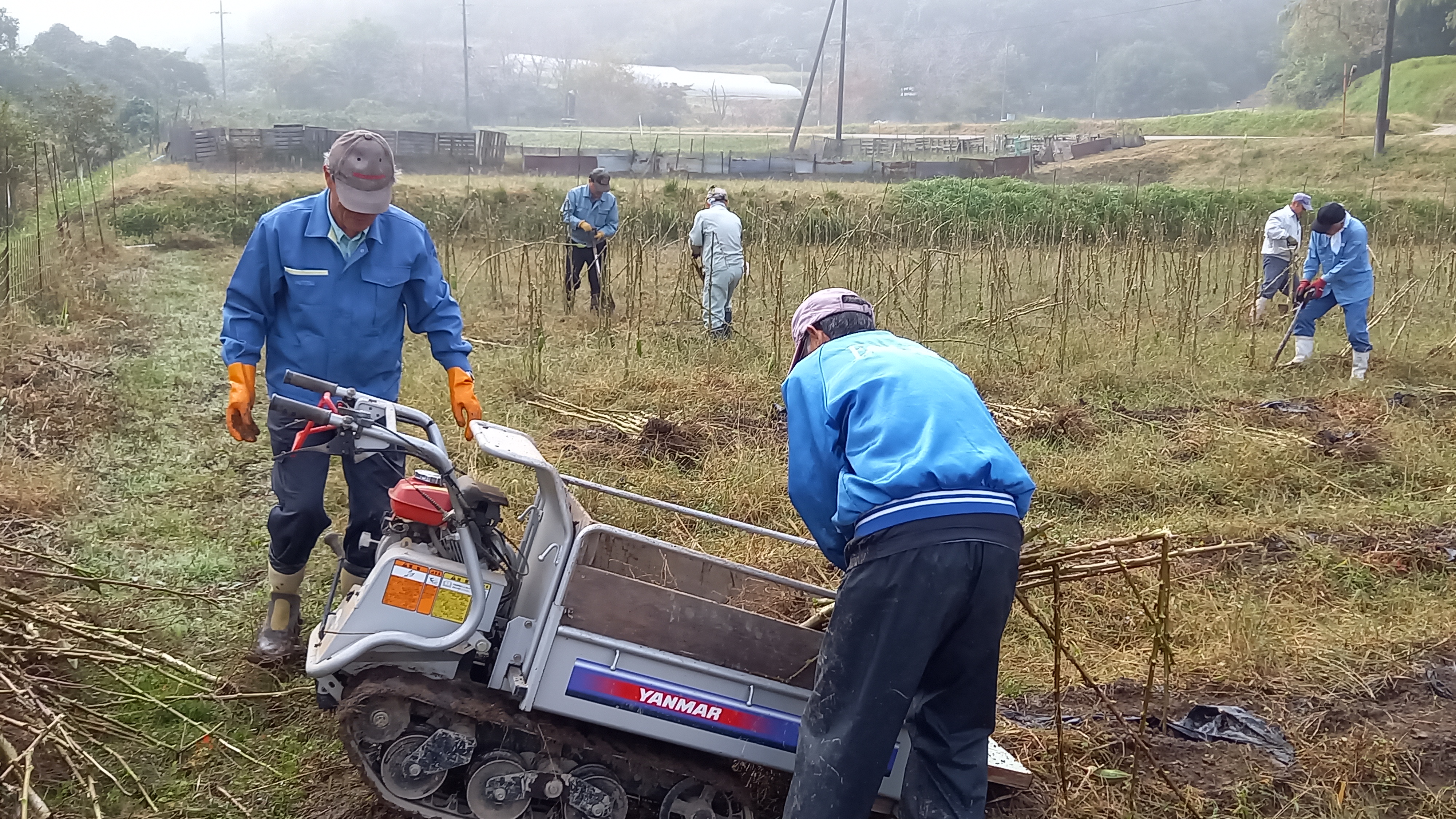 令和6年11月9日八代オクラ畑後片付け、腰は大丈夫ですか?