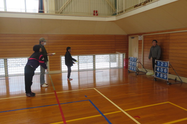 令和7年2月9日(日)ヤシロンピック開催、輪投げ・フロアカーリング・ストラックアウト・スリッパ飛ばしをおこなう。