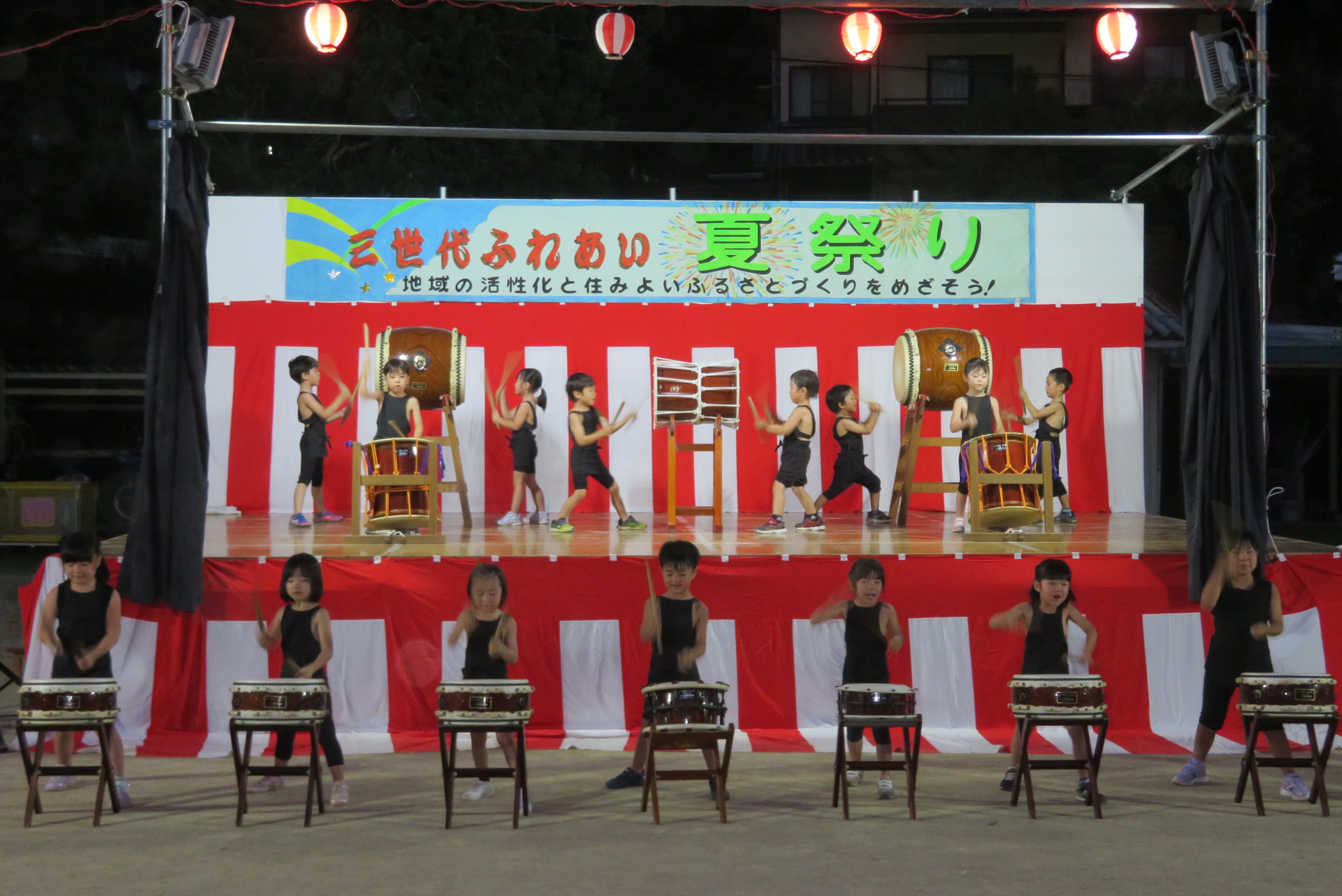 | 八代保育園太鼓演技(しぐさがかわいいです) | 八代小学校太鼓演技(ばちさばきが素晴らしい) |