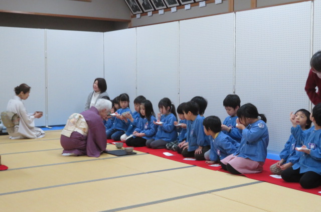 令和7年1月17日 新春お茶会今年も保育園児・小学生がお茶をいただきました。